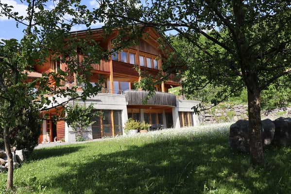 Die gemütliche Ferienwohnung (3½-Zimmer, 75m², Parterre) verfügt über zwei Doppelschlafzimmer, eine grosse, modern eingerichtete Küche, ein grosszügiges Wohnzimmer mit Sat-TV/Radio und Internet sowie einen gedeckten Sitzplatz mit viel Umschwung und Biotop.